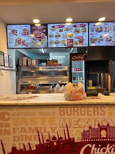 - Full Kitchen: Professional pressure fryers, open fryers, rotisserie unit, tandoori oven, and griddle station.